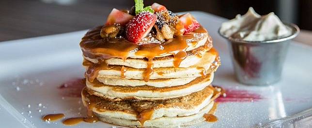 Pancake merupakan makanan yang berbahan dasar adonan tepung yang dipanggang diatas wajan dan diberi topping di atasnya. Topping pancake beragam mulai dari maple syrup, madu, cokelat dan buah-buahan.