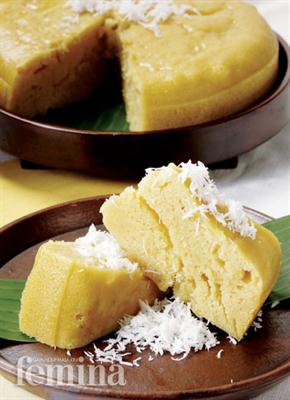 - Tuang adonan ke dalam loyang bulat diameter 20 cm yang sudah dilapisi daun pisang dan disemir minyak.