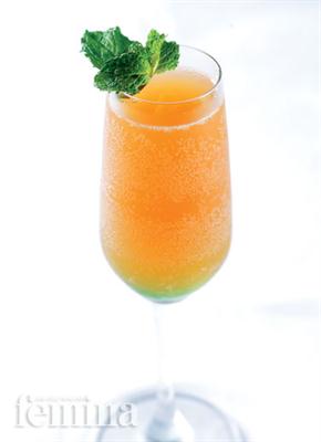 - Masukkan jus jeruk, jus cranberry, sirop mint, dan es batu ke dalam blender.