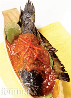 - Siram bumbu ke permukaan ikan gabus. Sajikan.(f)