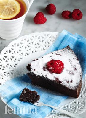 - Setelah tidak panas, taburi gula bubuk dan beri raspberry. Potong-potong. Sajikan disertai raspberries coulis.