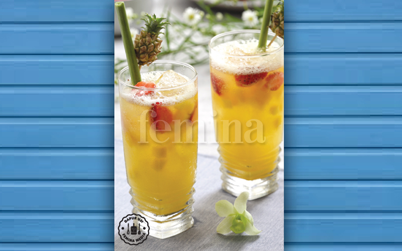 - Masukkan nanas, jus jeruk, dan jahe ke dalam blender, proses hingga halus. Saring.