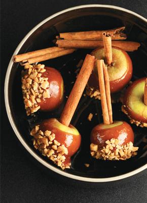 - Lubangi bagian tengah atas apel. Tusuk dengan kayu manis. Ulangi hingga apel habis. Sisihkan.